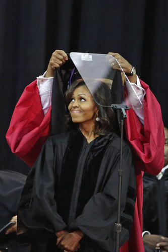 Michelle Obama encouraged the graduates of Bowie State University on Friday to live up to the legacy of their university's founders and the leaders of the civil rights movement by promoting the importance of education in the black community.