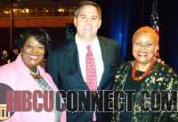Atlanta Journal Constitution Publisher John Mellot congratulates Pacesetter Award Winners Valencia Adams (left) and M. Alexis Scott.
