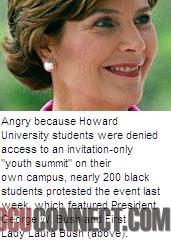 Angry because Howard University students were denied access to an invitation-only youth summit on their own campus, nearly 200 black students protested the event last week, which featured President George W. Bush and First Lady Laura Bush.