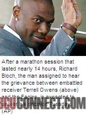 After a marathon session that lasted nearly 14 hours, Richard Bloch, the man assigned to hear the grievance between Owens and the Eagles Friday, is expected to deliver his decision Tuesday. Owens is arguing that the four-game suspension and plan to deactivate him for the duration of the 2005 season is an excessive penalty, while the Eagles deem Owens’ behavior and public criticisms of quarterback Donovan McNabb as conduct detrimental to the team.