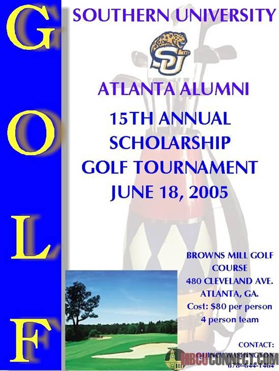 The Southern University Alumni Federation Metropolitan Atlanta Chapter will host its 15th Annual Golf Tournament on Saturday, June 18th 2005 8:00 a.m. at the Browns Mill Golf Course. 480 Cleveland Ave. SE Atlanta, GA. The cost is $80 per person with a four person team. All proceeds will be used to provide scholarships to deserving students attending Southern University A&M College. For more information please contact Quincy Washington 678-644-1464. www.tournevents.com/suatlanta