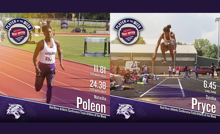 After posting the best times and distances in the NAIA, Natasha Poleon (JR/Vieux Fort, St. Lucia) wins Red River Athletic Conference Track Athlete of the Week and Taishia Pryce (SO/Kingston, Jamaica) wins Field Athlete of the Week for March 19-25.
