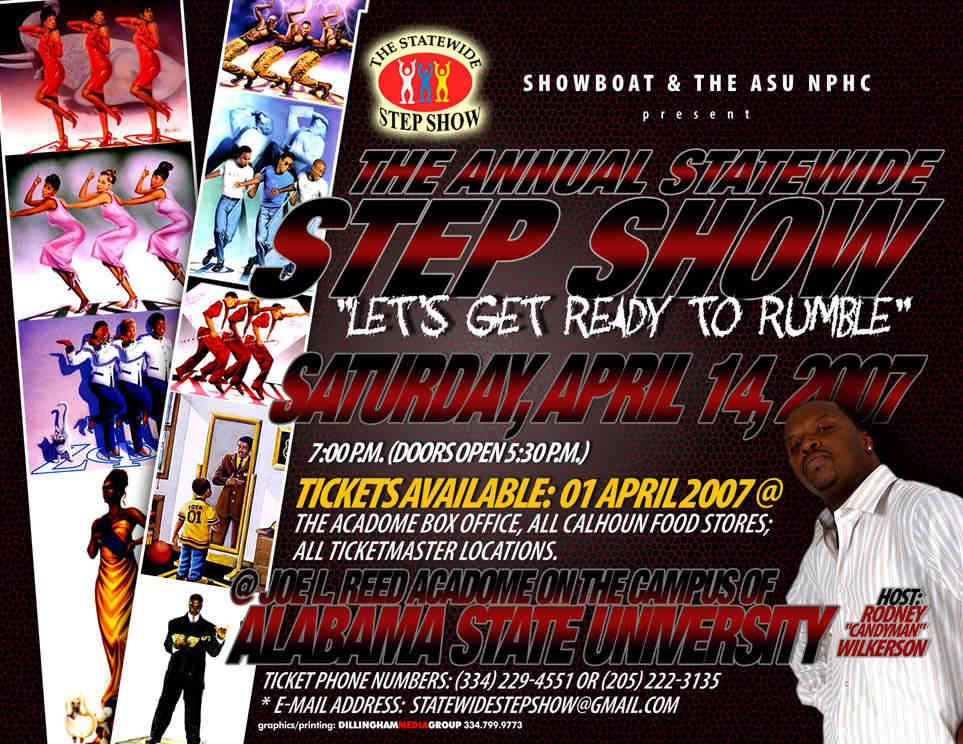 “STOMP THE YARD” the movie….now “Stomp The Yard” for real. Here comes the 26th edition of the Alabama Statewide Step Show, Saturday, April 14, 2007, in the glorious Joe L. Reed Acadome on the campus of Alabama State University. These are the best teams in the entire southeast and we invite you to come and see for yourself. Tickets go on sale at all TicketMaster outlets on March 24, 2007.