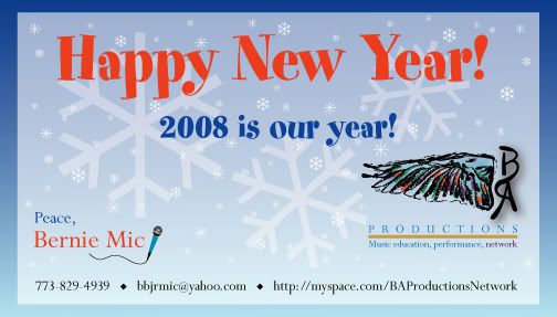I’m sure there have been times throughout the year when you have felt depressed, saddened, and angry about some of the struggles in your life and the events that are going on around you. War stories, negative comments about America’s integrity, and unexpected deaths of loved ones are all legitimate reasons to feel down--and that’s just being honest. So, let’s be all-around honest, because there is still someone out there that is worse off than us. After you really begin to realize how blessed we are, take a moment to feel good about having another opportunity to give something great, learn something new, touch something nice, taste something delicious, and listen to something beautiful. Because of the simple fact that we live, we should appreciate the opportunity to TRY one more time to get it right. 2008 is our year! Enjoy.