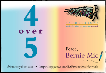 http://myspace.com/BAProductionsNetwork and listen to "4 over 5." Please send us your thoughts. We'd love to hear your comments. (Don't worry, you can be honest. We're not that sensitive. )