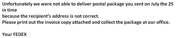 Unfortunately we were not able to deliver postal package you sent on July the 25 in time